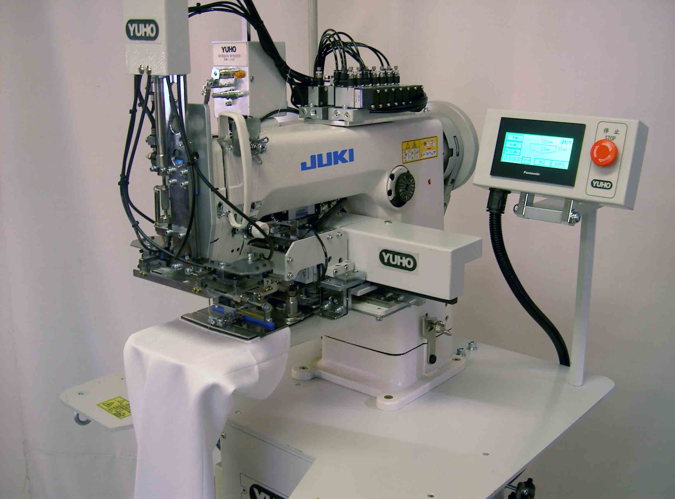 | 主な装置 | ★ 縫いゲージ1組(パターンソフト付き) ★ 反転クランク装置 ★ 三方向折り込み装置 ★ 液晶タッチパネル ★ 下糸残量カウンター ★ 自動下糸巻き装置 ★ 糸切れ検知装置(TBD) ★ エァーガン |
