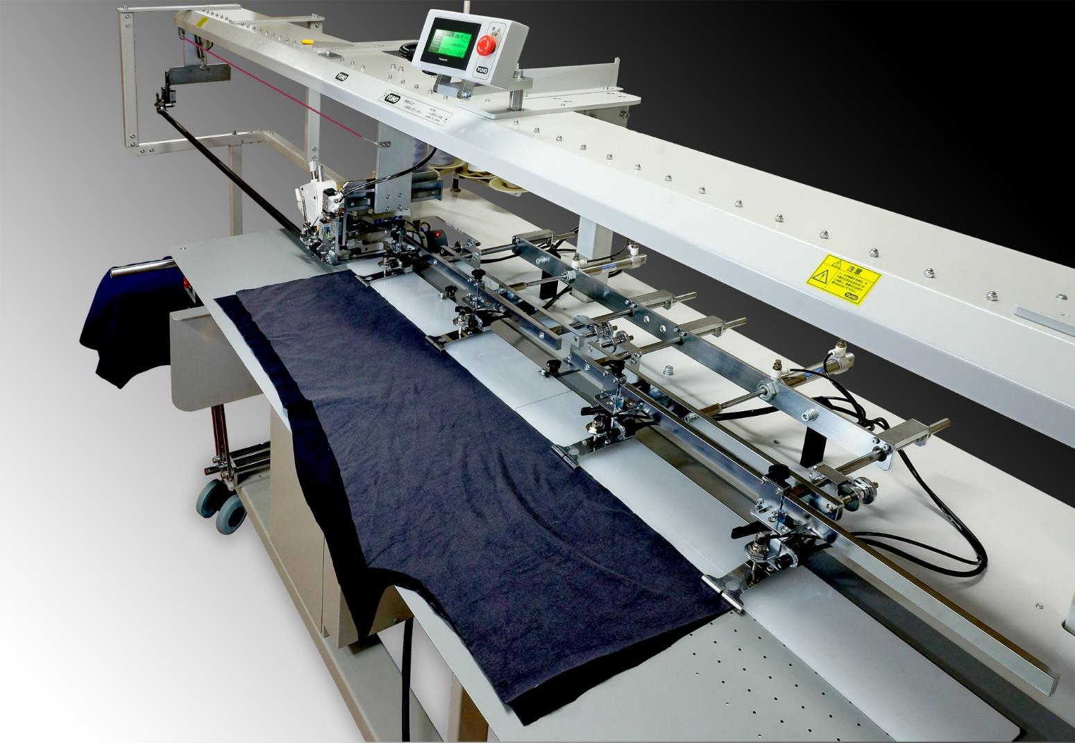 パンツ用途では縫い長さ1,300o設計により、1回の動作で一気に地縫いが可能。