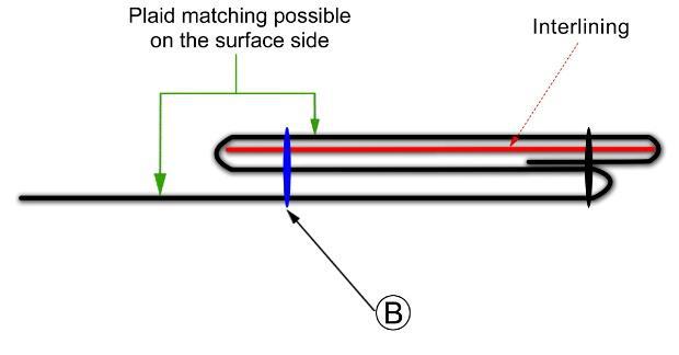 | Also for the Shirt Upper Front Placket | @@@@@@@![]() As long as the front placket is made with a one-piece structure (as shown on the above drawing), the U-4009 is also useful for the production of the upper front placket, just by changing the setting of Stopper/Ruler. Although the extra stitching process B is required separately, this solution has advantages such as ease of plaid matching (horizontal stripe) and ease of inserting interlining. |