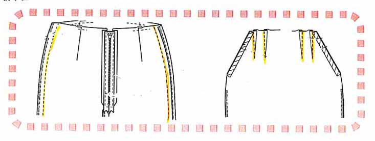 (決められたヒダ数をウエストサイズに合せて仮止め縫い) |